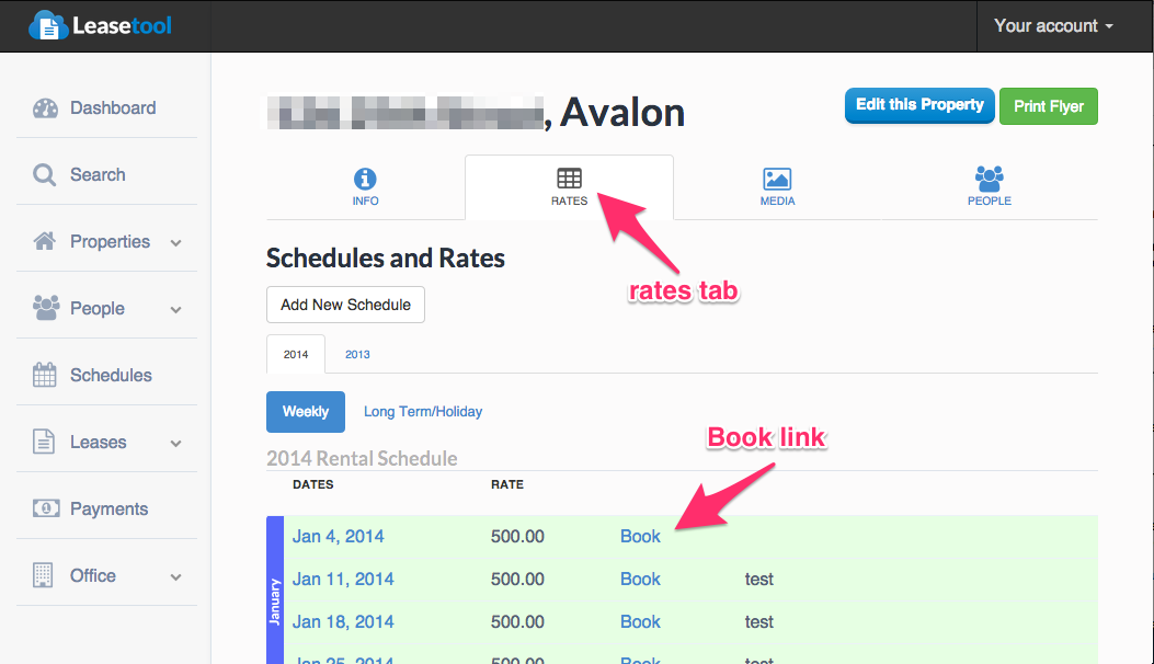 If you haven't added a property yet, see Add a Property or if you haven't added any rates to a property yet, see Adding Rates to a Property.