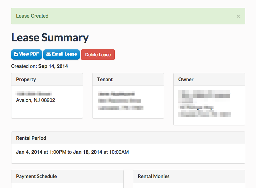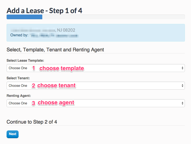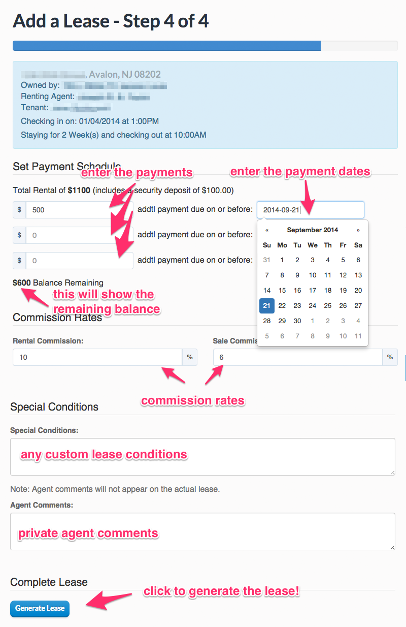 Once you click the "Book" link you'll go to the first lease creation screen.