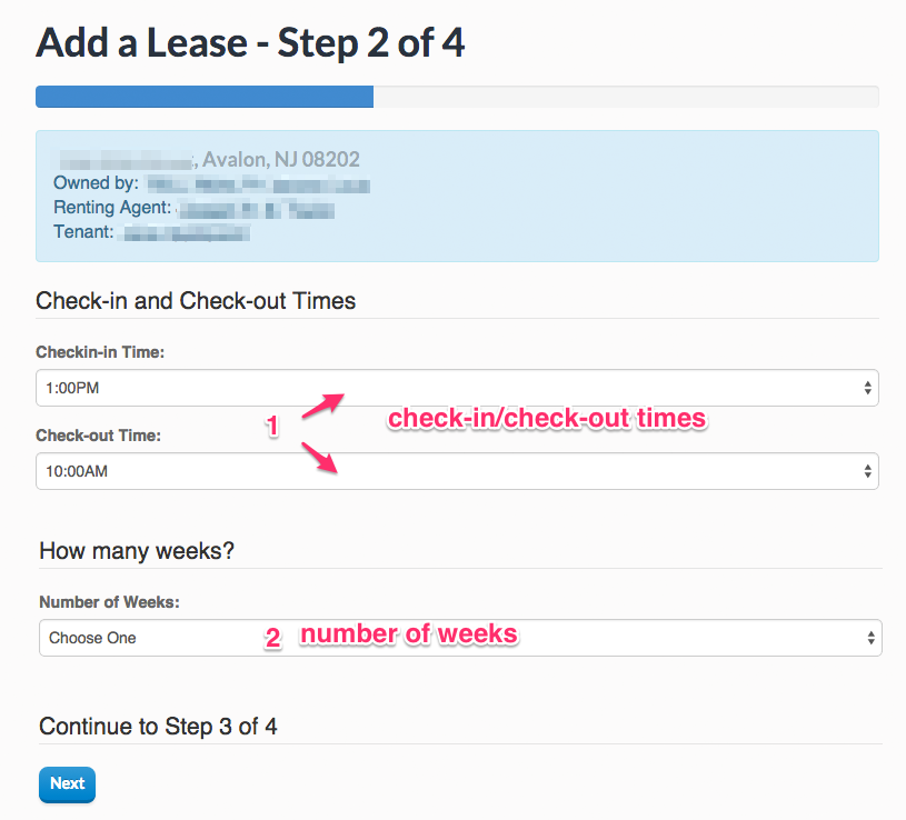 2. If this is a weekly/short term rental, choose the number of weeks for the lease.