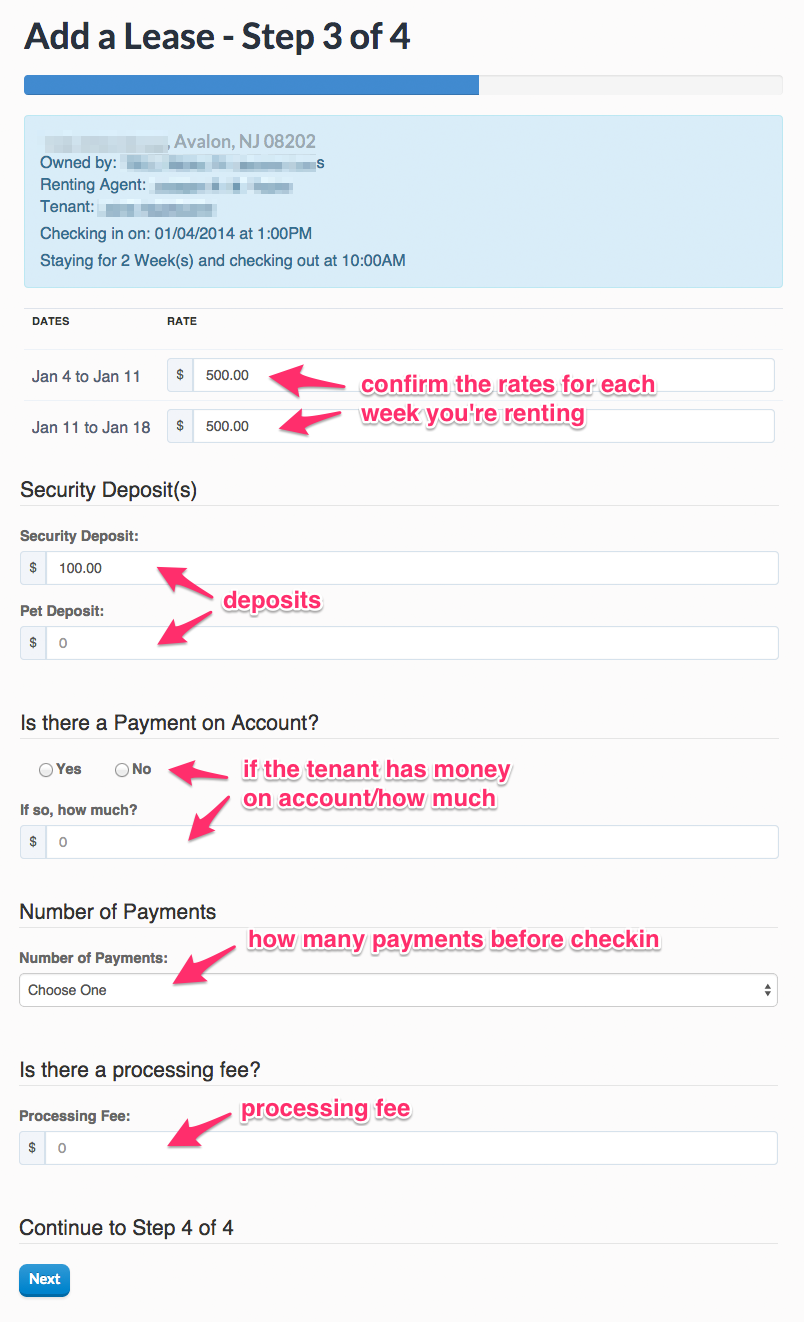 Confirm that the rate displayed is the rate being used for the lease. If you want to offer a discount you have a chance to change the rate here.